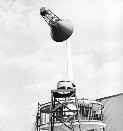 ![]() One-third scale mock-up of Apollo spacecraft is mounted on a range rotator at the Collins Antenna Division in Dallas. Complex antenna pattern measurements are made at this facility. |