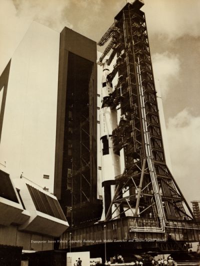 ![]() Transporter leaves VAB with Mobile Launcher and Saturn/Apollo Dummy. |
