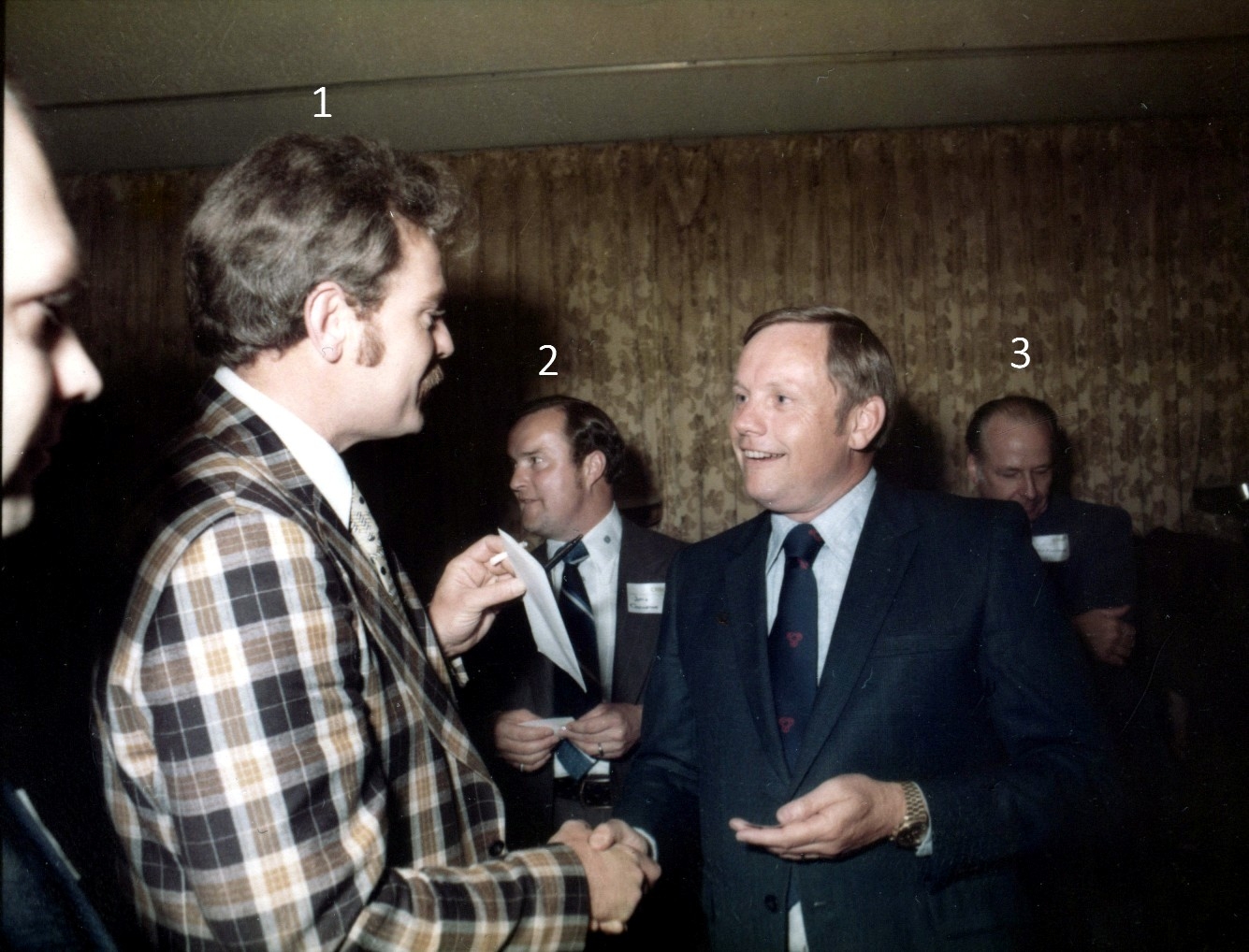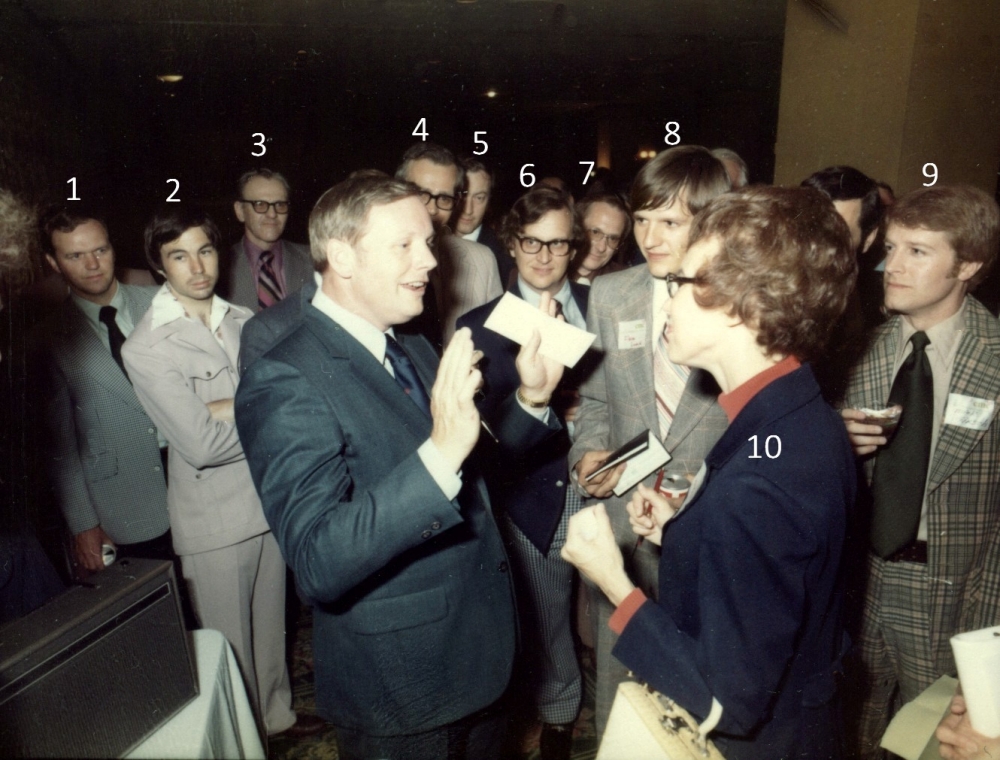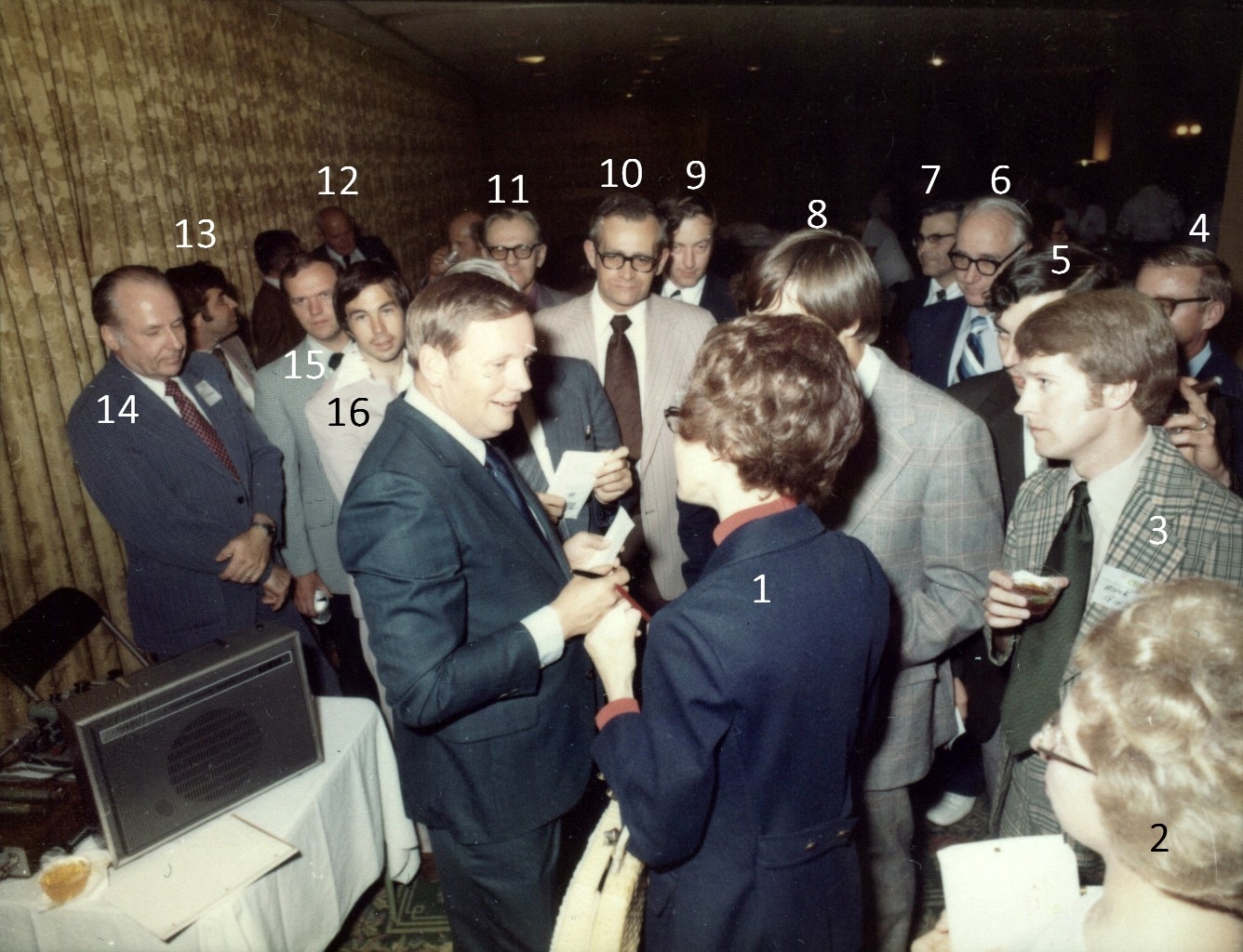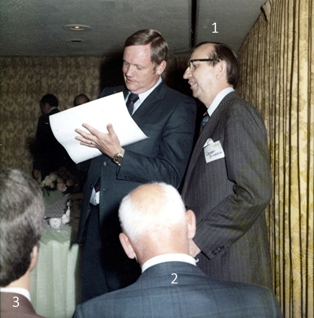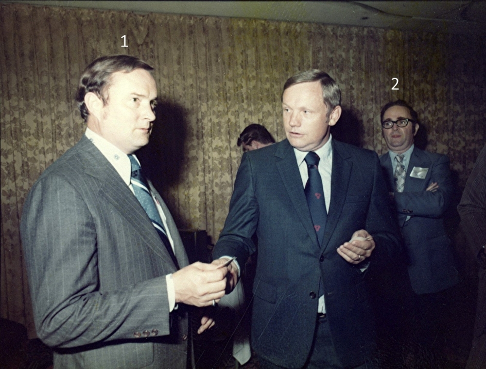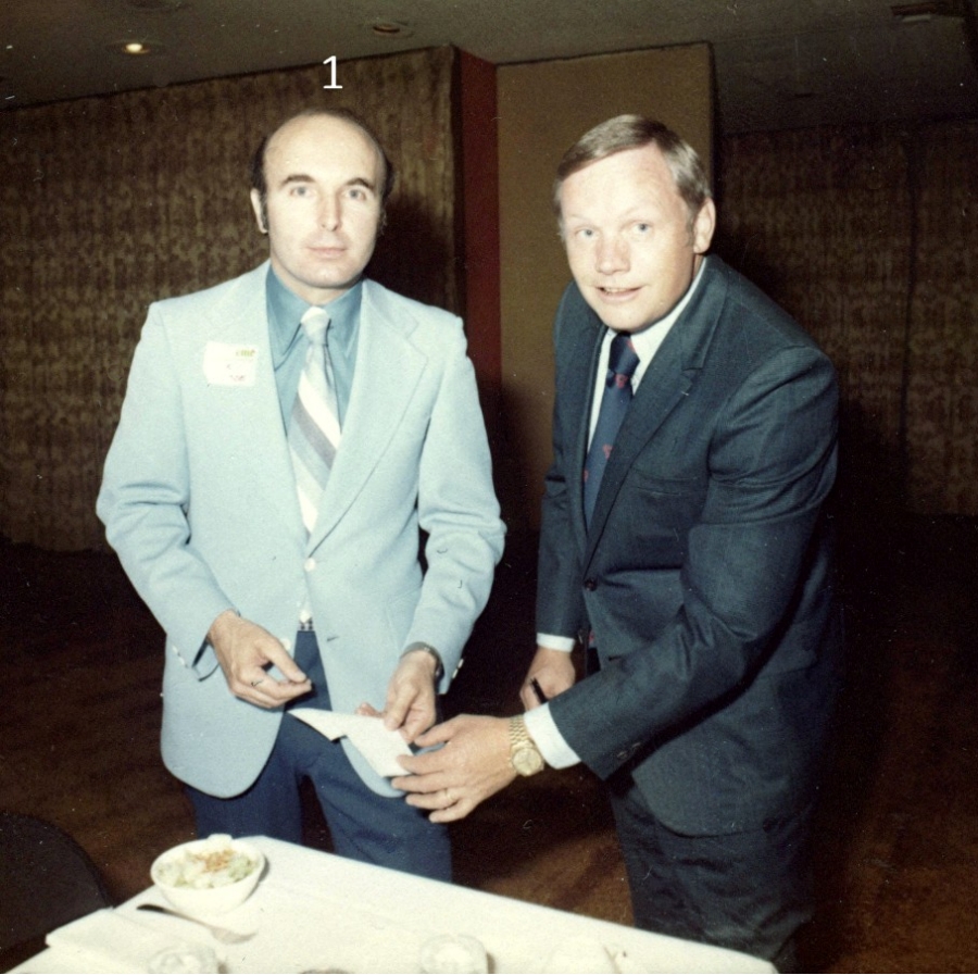 On May 29, 1975 Neil Armstrong, the first man to step onto the Moon, visited Rockwell Collins. That evening he was the keynote speaker at a dinner meeting of the Collins Management Club held at the Roosevelt Hotel in downtown Cedar Rapids, Iowa. Recently, a series of color contact print photographs taken at that event have surfaced in the museum archives. These photos were scanned into digital files. The challenge now is to identify all the people in the photographs getting Neil’s autograph. Why is this important? Two reasons – first to accurately preserve the history of the event and secondly, Neil Armstrong’s autograph is highly prized by collectors. A recent internet investigation revealed that his autograph is the number one sought autograph by collectors. Recently one sold for $7,500. So please pass the word to the folks attending that CMC meeting years ago. They may have a valuable bit of historical memorabilia and not know it. Identifying the people in the photographs If you can identify any of the people in these photographs, please jot down the photograph ID number, and the individual number appearing in the photo along with the person’s name and email the information to me. My email address is rod.blocksome@gmail.com Thank-you. |