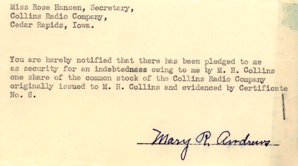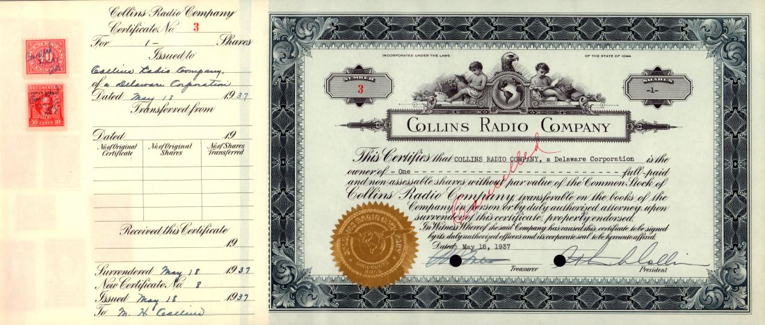 | 3 | 1 | 18may1937 | Collins Radio Co. | Delaware Stock | 8 | 18may1937 | M. H. Collins | ||