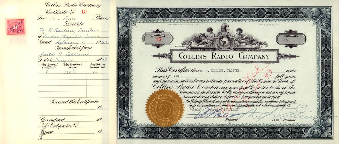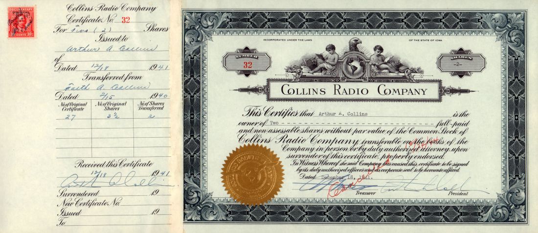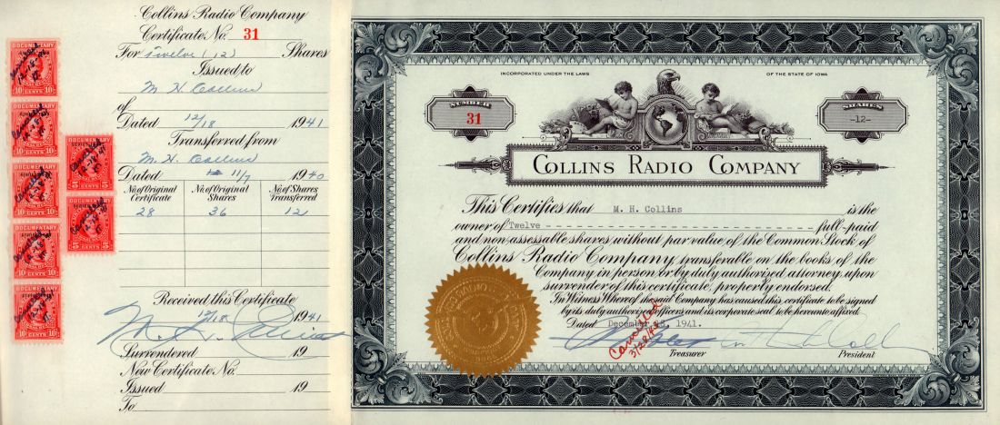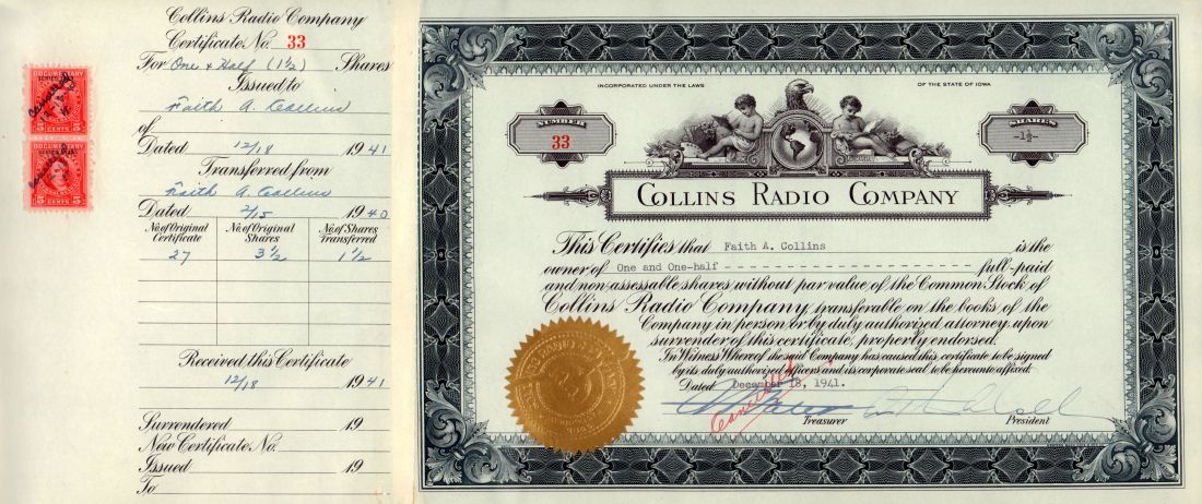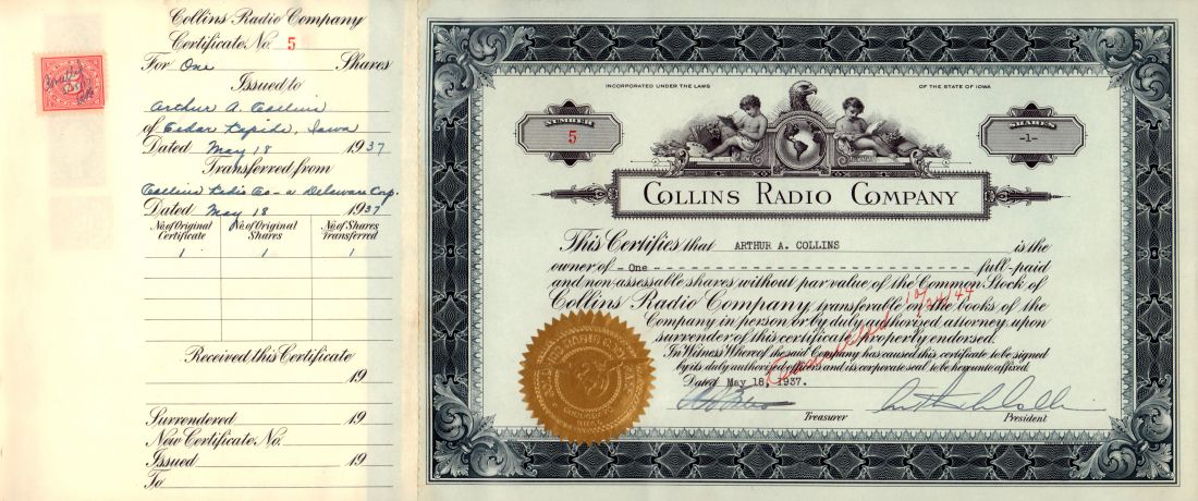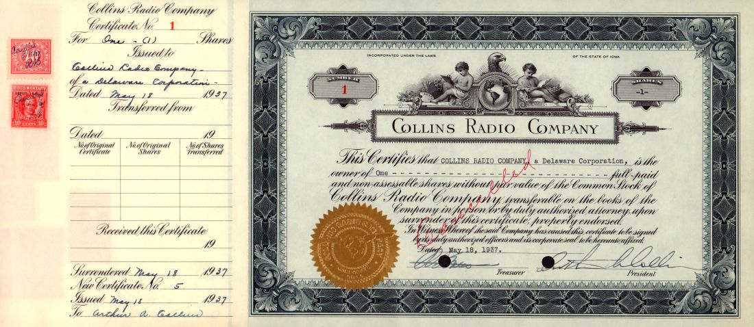 | 1 | 1 | 18may1937 | Collins Radio Co. | Delaware Stock | 5 | 18may1937 | Arthur A. Collins | ||