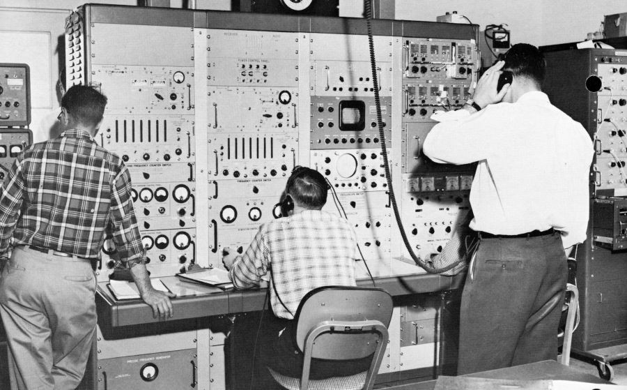 Since the Echo launch, Collins research teams have been gathering data during every moment when it is possible to contact Echo in its passes. The signals generated between Cedar Rapids and Richardson are faithfully recorded on Ampex tapes. Then, minute studies are made of each transmission. Constants are checked and variables determined, and each piece of data carefully plotted.
