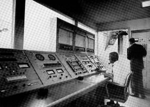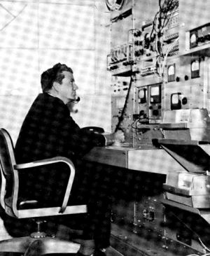 ![]() John Ford, head of Collins' advanced space systems department, conducts Echo II tests from the 28-foot-diameter antenna station. |