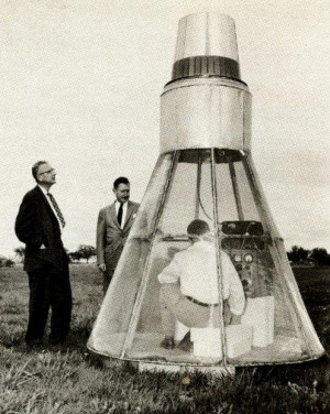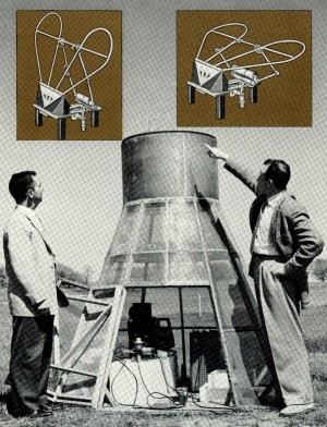![]() ONE-THIRD scale model of the Project Mercury capsule is mounted on pattern range rotator (top) at the Collins antenna testing range for radiation characteristics measurements. |