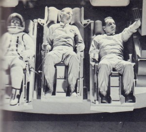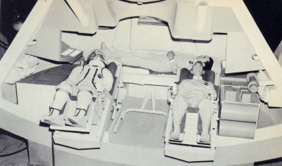 ![]() Configuration of three-man spacecraft includes fully adjustable seats. |