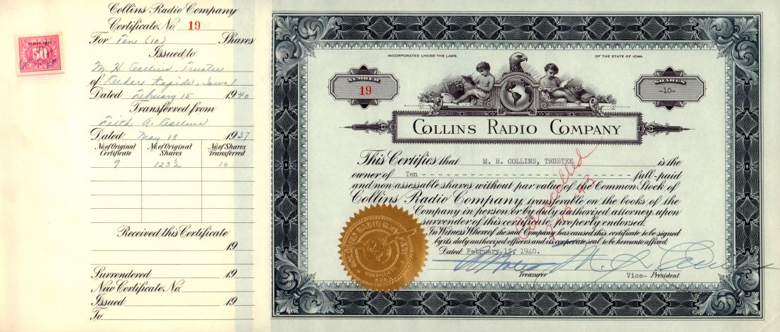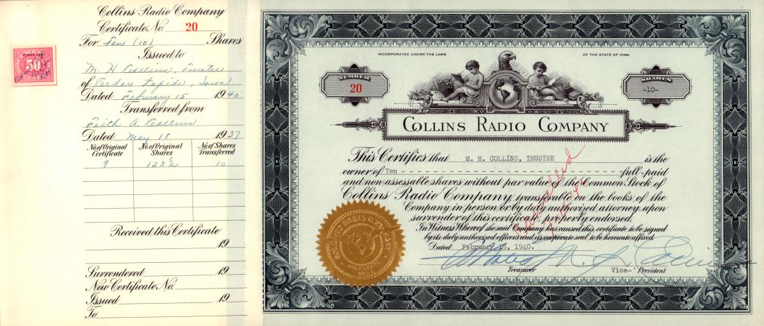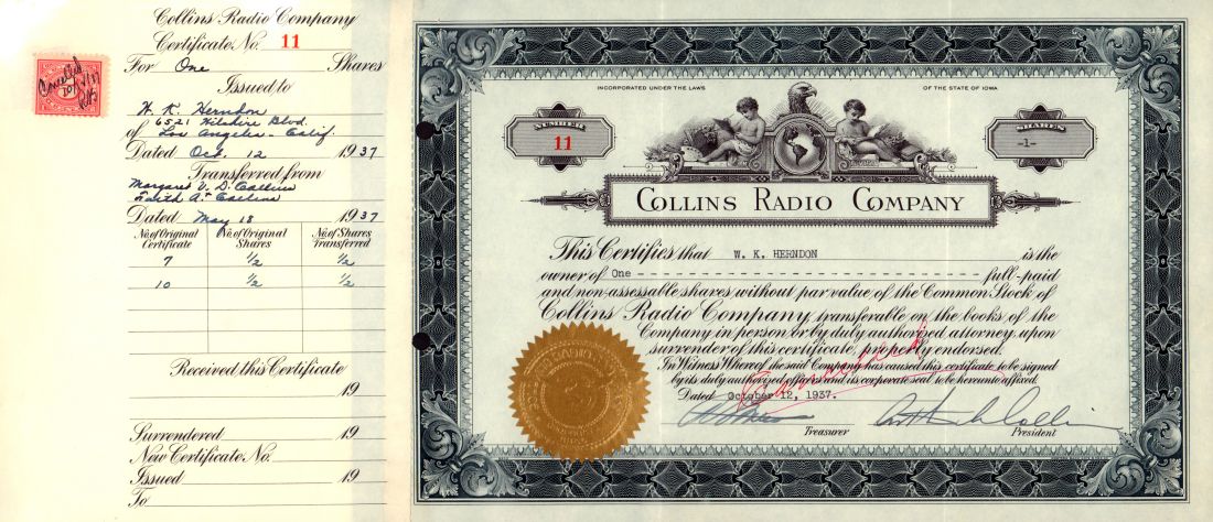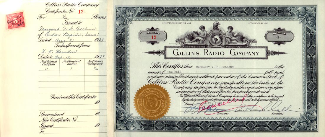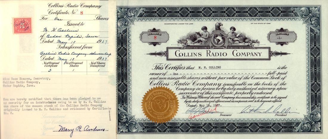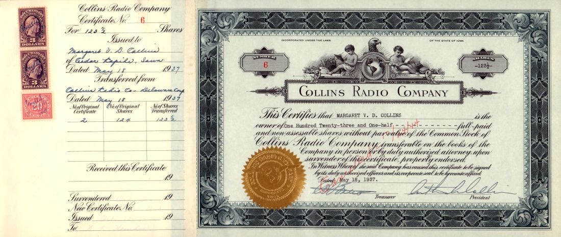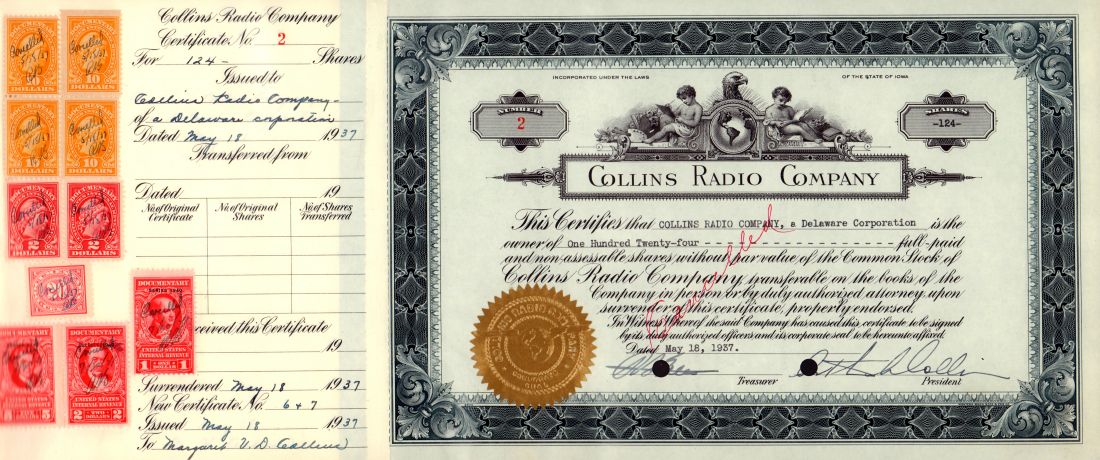 2 | 124 | 18may1937 | Collins Radio Co. | Delaware Stock | 6 & 7 | 18may1937 | Margaret V. D. Collins | ||