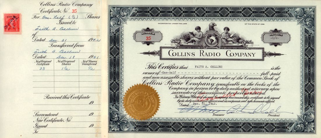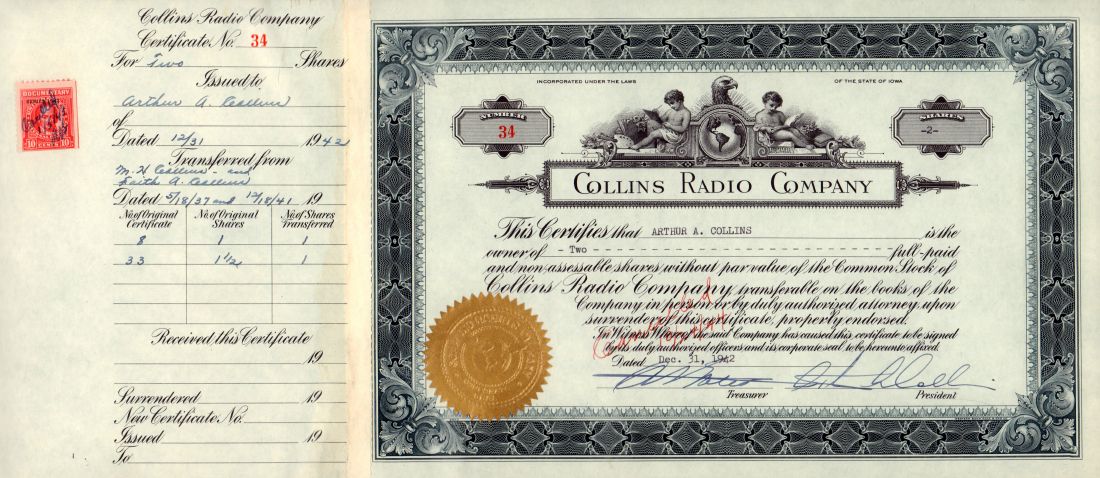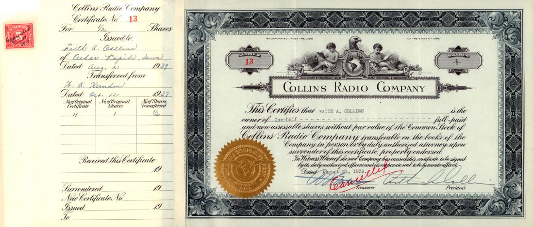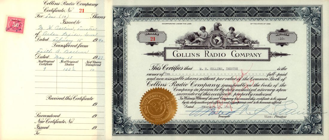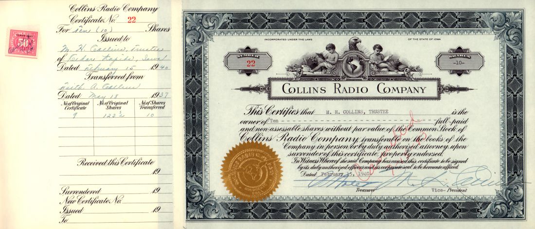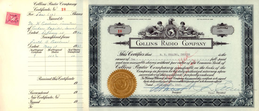 2 | 124 | 18may1937 | Collins Radio Co. | Delaware Stock | 6 & 7 | 18may1937 | Margaret V. D. Collins | ||