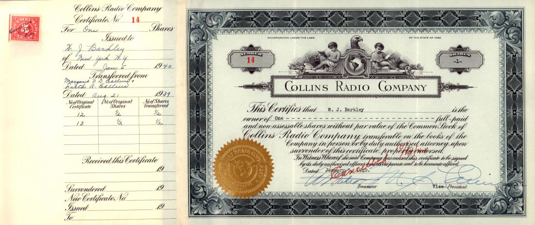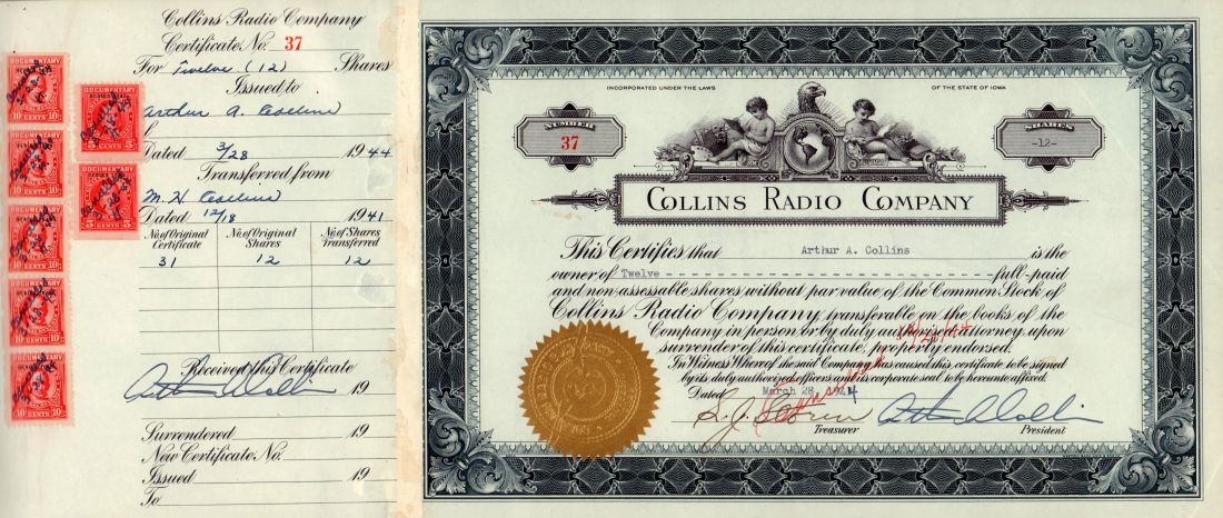 1 | 1 | 18may1937 | Collins Radio Co. | Delaware Stock | 5 | 18may1937 | Arthur A. Collins | ||
