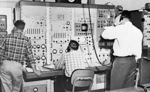 Since the Echo launch, Collins research teams have been gathering data during every moment when it is possible to contact Echo in its passes. The signals generated between Cedar Rapids and Richardson are faithfully recorded on Ampex tapes. Then, minute studies are made of each transmission. Constants are checked and variables determined, and each piece of data carefully plotted.