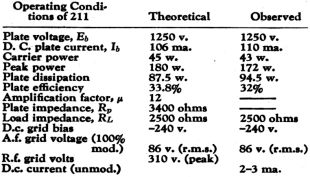 The data in the table are based on the use of air-cooled tubes of the 211, 830-B and RK-20 types but are more or less applicable to larger and smaller tubes.